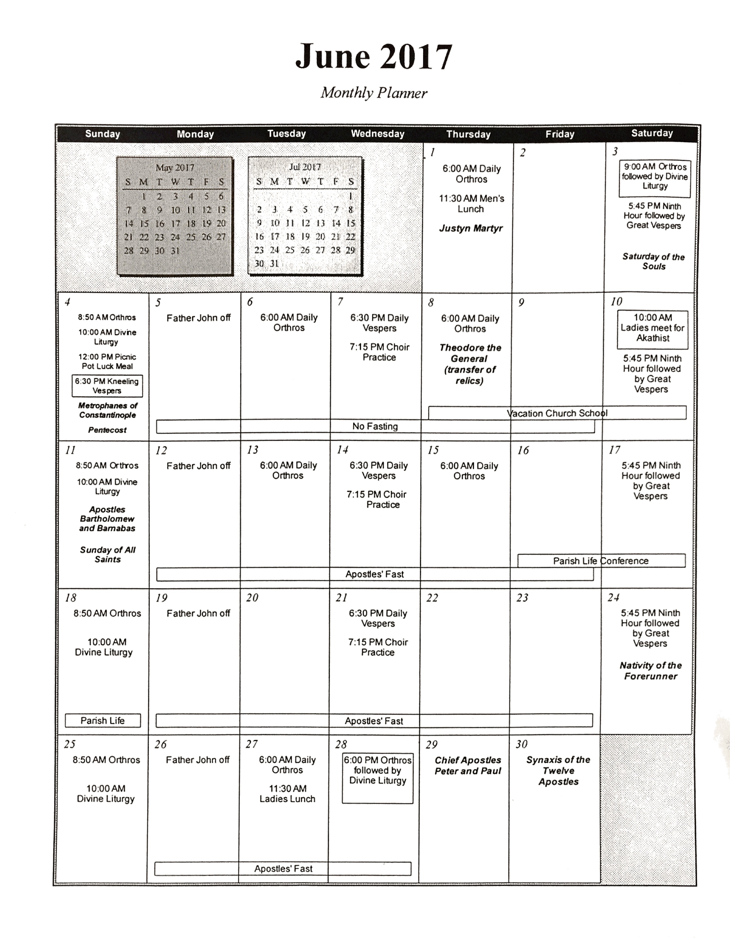 * We will celebrate Saturday of the Souls on Saturday morning, June 3rd with Orthros followed by Divine Liturgy, beginning at 9:00 a.m.
