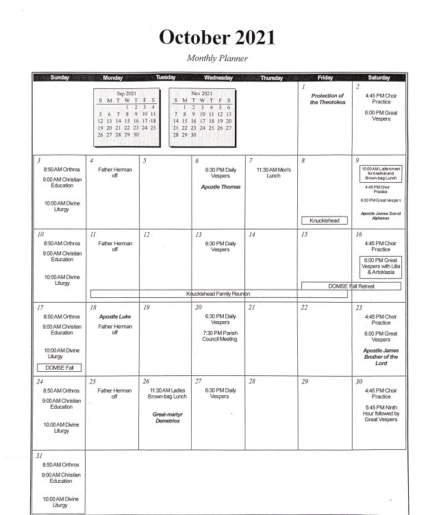 * We will celebrate the feastday of St. Raphael, Bishop of Brooklyn with Orthros followed by Divine Liturgy on Saturday morning, November 6th, beginning at 9:00 a.m.