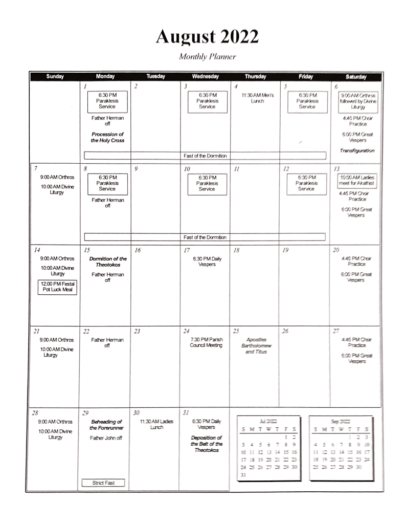 Here is the live stream for Orthros and Divine Liturgy – Sun 7/24/2022 If you need, here are instructions for accessing this content from your phone, tablet, computer, or TV.