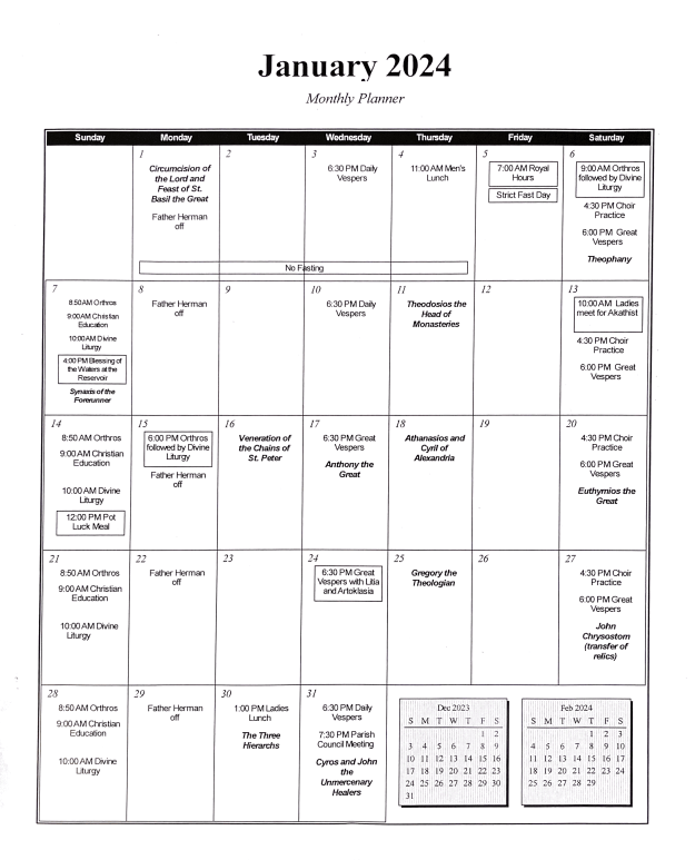 Here is the live stream for Orthros and Divine Liturgy – Sun, Dec 31, 2023 If you need, here are instructions for accessing this content from your phone, tablet, computer, or TV.