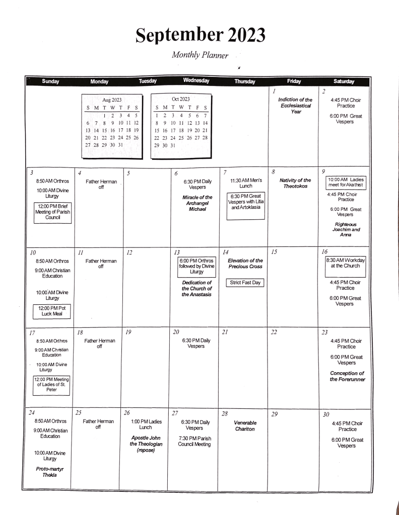 The Church workday has been rescheduled for Saturday, September 23rd.